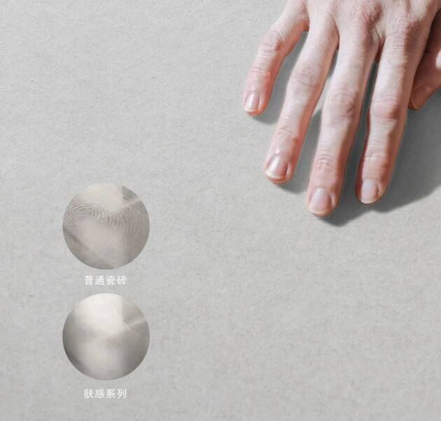 在工艺上,肤感系列采用第三代肤感釉,砖面SCI亲肤指数提升16%,更为细腻平滑,无橘皮效果,摸起来如同奶油肌般柔润。