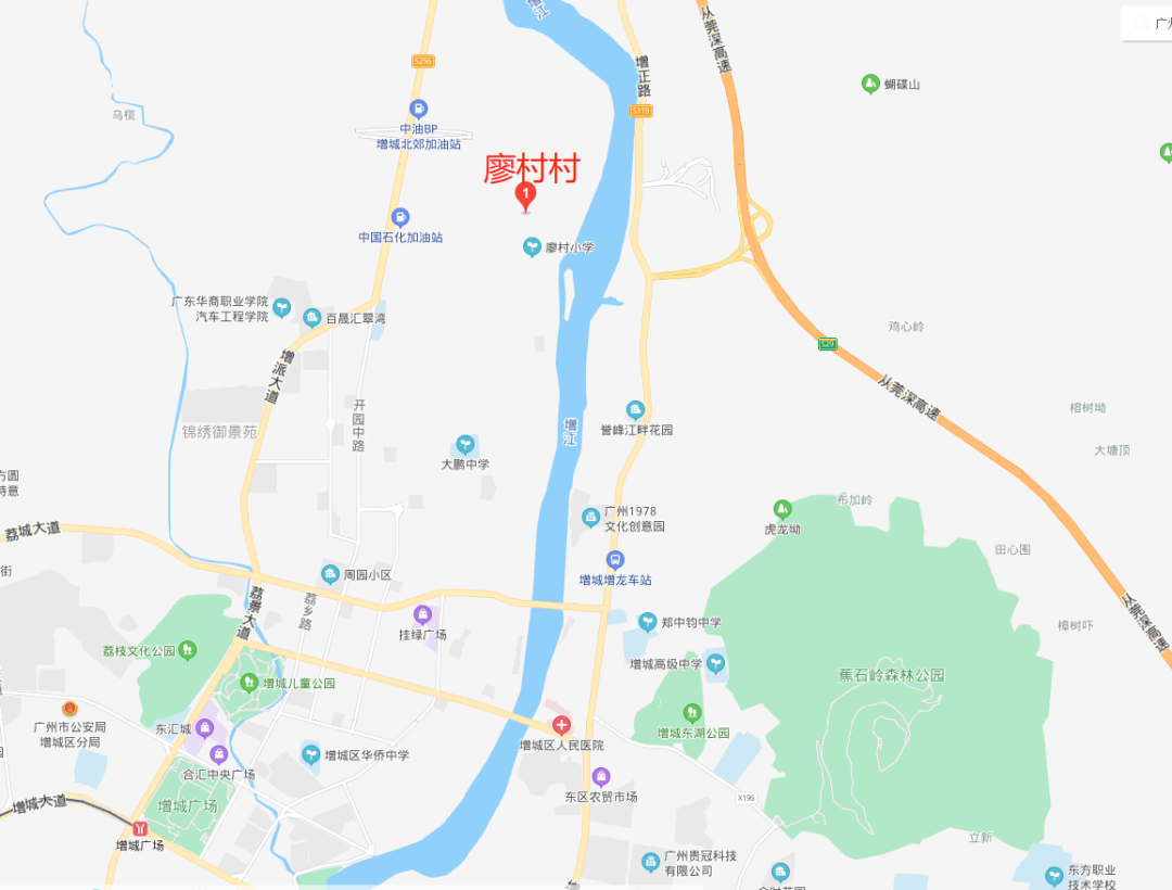 廖村村位于荔城北,增江河西岸,紧邻富鹏开发区,靠近增派公路,距离挂绿广场商圈约3公里,距离地铁21号线增城广场站直线距离约4公里,距离规划中的地铁16号线荔城站约2公里。