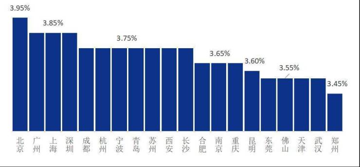 据易居房地产研究院最新统计,20个热点城市房贷利率形成梯队,并有几个重要的特征。第一、全国所有城市房贷利率均进入到4.0%以下的水平。即便是房贷利率最高的城市北京,其房贷利率也将从4.2%降低到3.95%。第二、房贷利率最低的城市,甚至可以做到3.45%。据此判断,部分城市尤其是中小城市房贷利率低于3.5%的可能性会非常大。第三、房贷利率不断接近公积金贷款利率(3.1%),办理房贷成为具有高性价比的一件事。此类重点城市的房贷市场将呈现持续活跃的态势。
