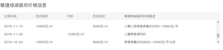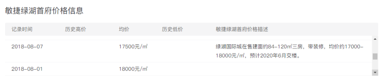再看二手房市场,链接平台数据显示,截至8月23日,在售的65套房源中,低于9000元/㎡单价的仅有3套,其余房源单价均在9400元/㎡起。