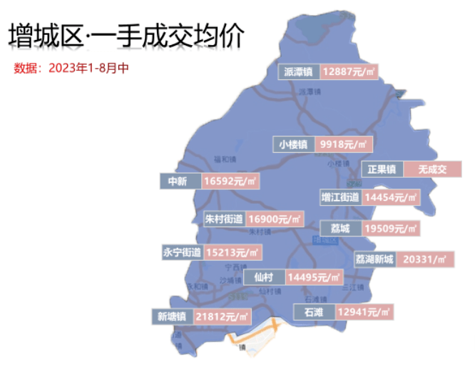 目前,增城区除临近主城区的新塘以及发展核心的荔湖新城房价尚在2万/㎡以上,其余板块均是1字头。
