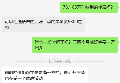 还有南向、楼盘较好的建面约78㎡三房单位,单价则约10000元/㎡。