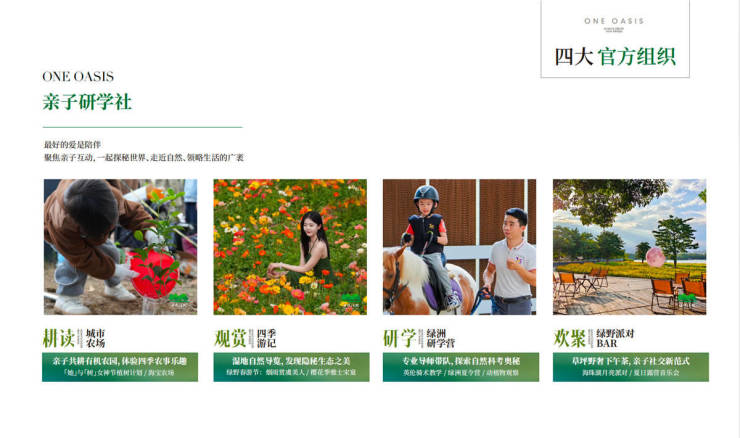 "社群建设的本质,是创造人与自然、人与人之间的美好连接。"项目方现场展示的"1+4+5"俱乐部体系,涵盖了从亲子研学社到文化艺术会的多元社群架构。"海宝农场"的亲子耕种活动、许鸿飞雕塑展、绿洲派对等特色项目,正在重构高端人群的生活方式。