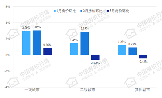 3月份新房统计的全国286个地级及以上城市中,环比涨幅超过2%的城市有16个,较上月增加4个;涨幅超过5%的城市有3个,与上月持平。