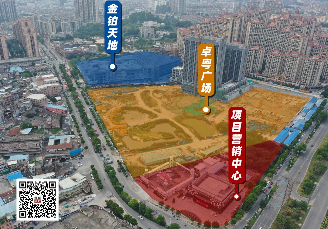 根据此前文件,卓粤广场将规划60万平方米集商业街区、五星级酒店、电影院等于一身的大型综合商业体。其中,位于项目西侧的商业部分为金铂天地。