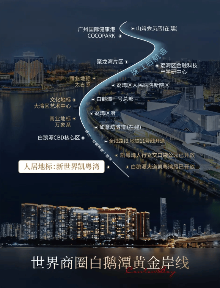 入场世界重奢商圈、入席白鹅潭第一圈层、入住江岸VIP品质生活圈!
