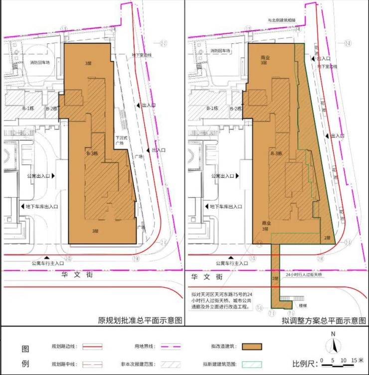 此次改造计划增设一座24小时行人过街天桥,以及对城市共通廊及外立面进行改造。