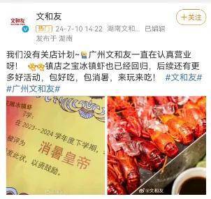 随后,文和友官方微博回应:广州文和友一直在认真营业,没有关店计划。