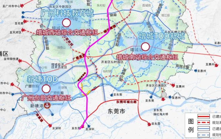 其中,2条地铁线为规划中的广州16号线及东莞4号线。前者拟计划途经石滩、增城火车站,并可于增城火车站换乘至东莞4号线,轻松畅达深圳、东莞等大湾区城市中心区域,共享湾区资源。