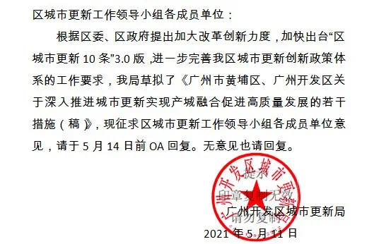这个政策规范表述为“广州市黄埔区、广州开发区关于深入推进城市更新实现产城融合促进高质量发展的若干措施(征求意见稿)”。这是自2020年出台的“黄埔区城市更新10条”的升级版,暂且称之为“黄埔旧改政策2.0版本”。