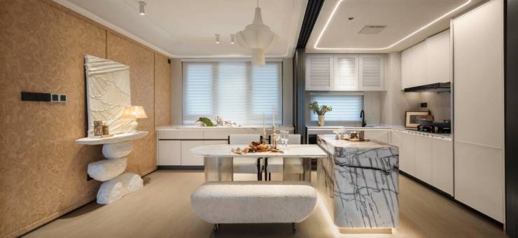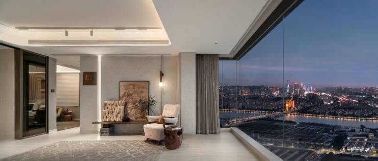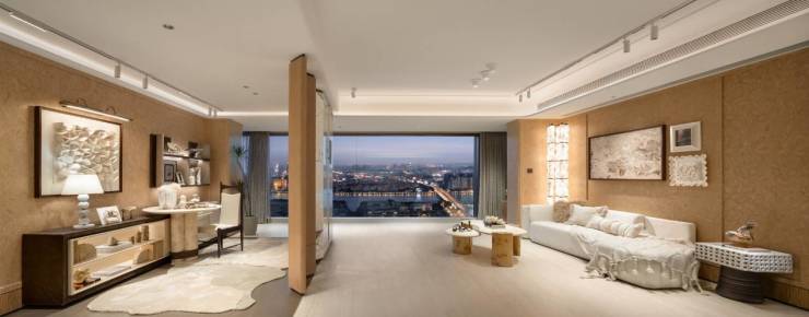建面约92㎡云璟颠覆传统小户型逻辑。设计师以「折叠空间」重构人居尺度,约50㎡LDKG一体化厅堂,搭配南向12米全景幕墙,打造媲美平层大宅的奢阔场域。