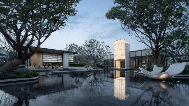 “示范区像一座微型美术馆,随手拍都是光影大片。”有很多参观的媒体和同行感叹。当安缦遇见珠江,「璟·颂」示范区重构人居想象。龙湖亚伦·央璟颂高定示范区此前已经开放,迅速成为全城网红打卡目的地。约50m长的黑晶水盘门庭以纽约安缦同款设计致敬世界美学,36片宣纸玻璃构成的琉光橱窗如艺术装置般切割光影,两棵20年朴树以东方礼仪迎宾,步步尊贵不凡。“水院倒影让建筑‘悬浮’在珠江上,这种虚实交织的手法太震撼了。”一位设计博主在社交平台写道。