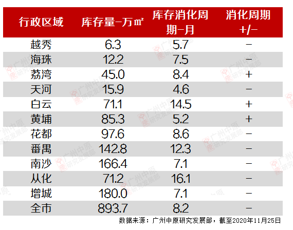据广州中原研究发展部统计数据显示,截止至2020年11月25日,越秀区新房消化周期仅为5.7个月,供不应求情况进一步加剧。