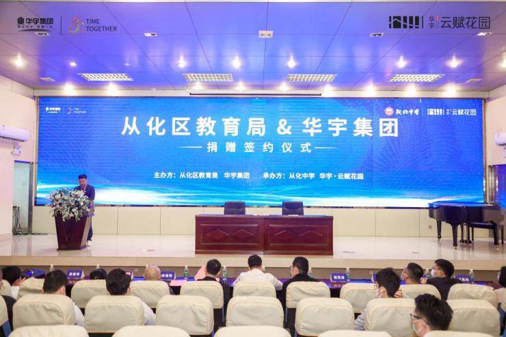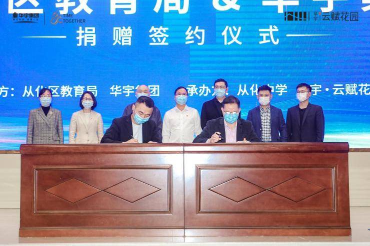 在捐赠签约仪式上,华宇集团向从化区教育基金会捐赠1000万元,用于支持从化教育发展;同时为从化中学校园室场升级改造,携手助力从化区教育事业发展。