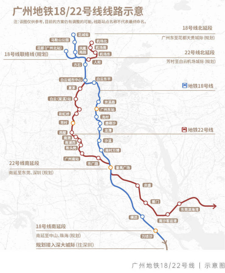 不仅如此,两大重要的交通线路还连通广州南站、白云棠溪TOD等核心枢纽,未来还将连通深圳、珠海、澳门,说他们是未来的湾区交通大动脉也不为过。