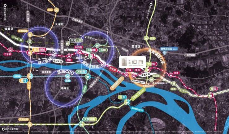 黄埔润府择址“老黄埔”的核芯腹地,是广州“东进”战略的桥头堡。5号线与7号线双轨汇聚于此,一线快速抵达珠江新城,承载百万菁英的栖居理想。