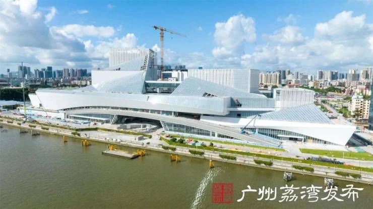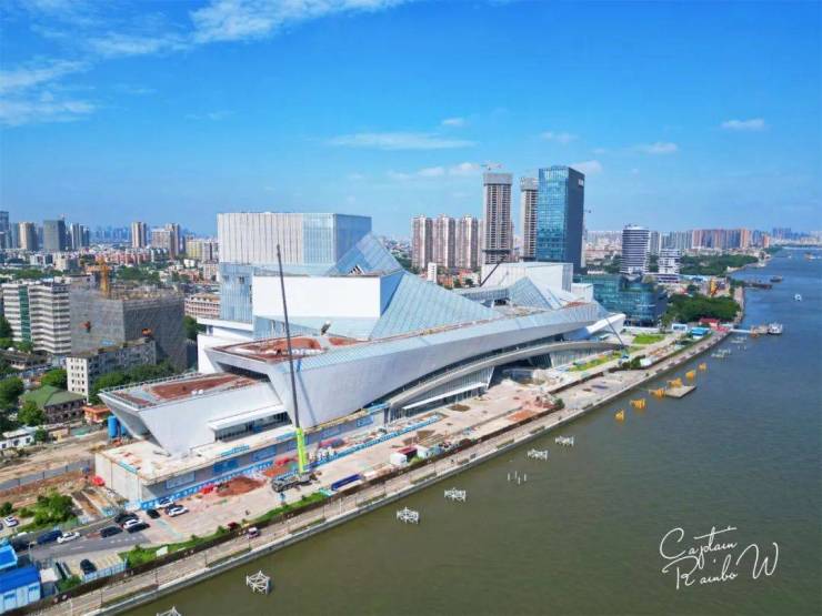 白鹅潭大湾区艺术中心中心主体结构建设已接近尾声,预计近期本月完成主体工程建设。