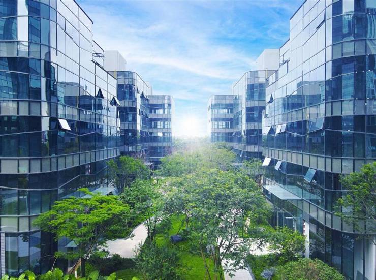 由清华美院团队设计,从首层独立会所到私家入户电梯,充分考虑自然景观资源,以人为本,通过退台、连廊,全玻璃幕墙、独特的弧形外观等设计手段,不仅追求建筑物外观的品质感,也力求建筑物内各个方位的景观均好性,为各楼层,各朝向提供180°—270°宽银幕的生态湖景或园林景观;通过结构优化,颠覆传统建筑核心筒设计,极大提升空间面积使用效率;专梯入户入层设置,50—80㎡门厅超值使用,满足企业私密私享需求,彰显逼格;充分考虑企业办公、展示、商务接待、员工生活等各类场景,功能配置上宜商宜住,兼具工作生活社交多种需要,是理念超前的新一代产品。