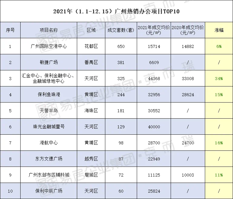 今年截至12.15,广州办公项目热销TOP3分别为广州国际空港中心、敏捷广场及汇金中心&保利金融中心&金融城绿地中心。