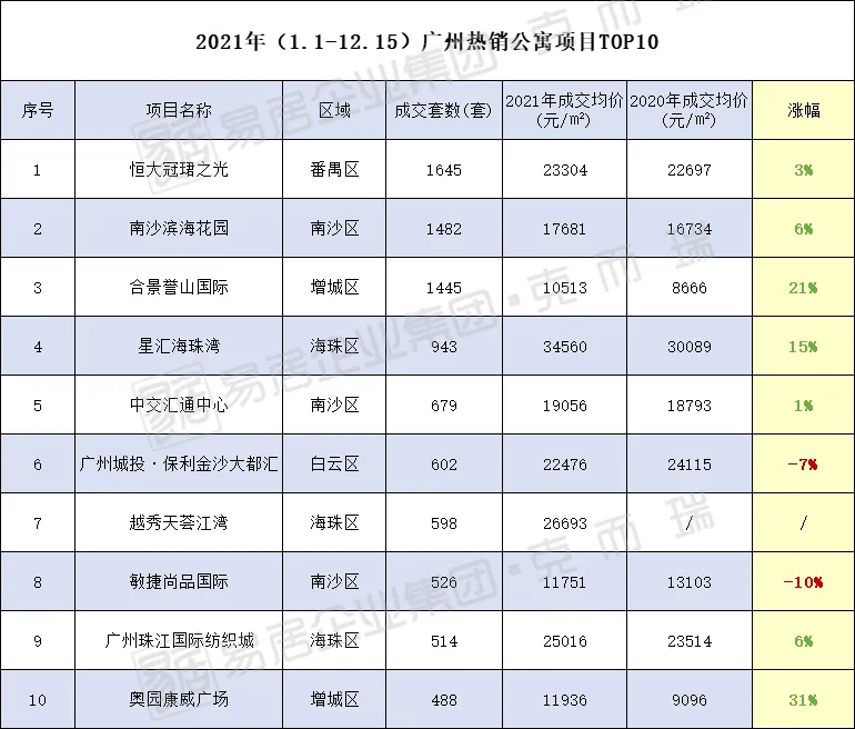 此外,据克而瑞数据统计,今年截至12.15,广州一手公寓热销TOP3为恒大冠珺之光、南沙滨海花园及合景誉山国际。