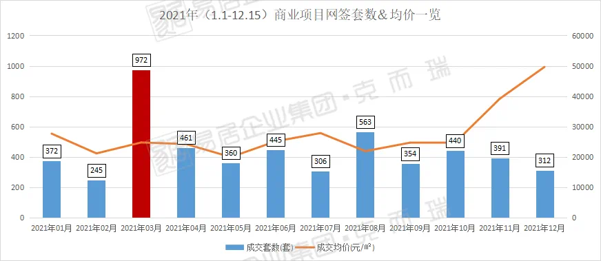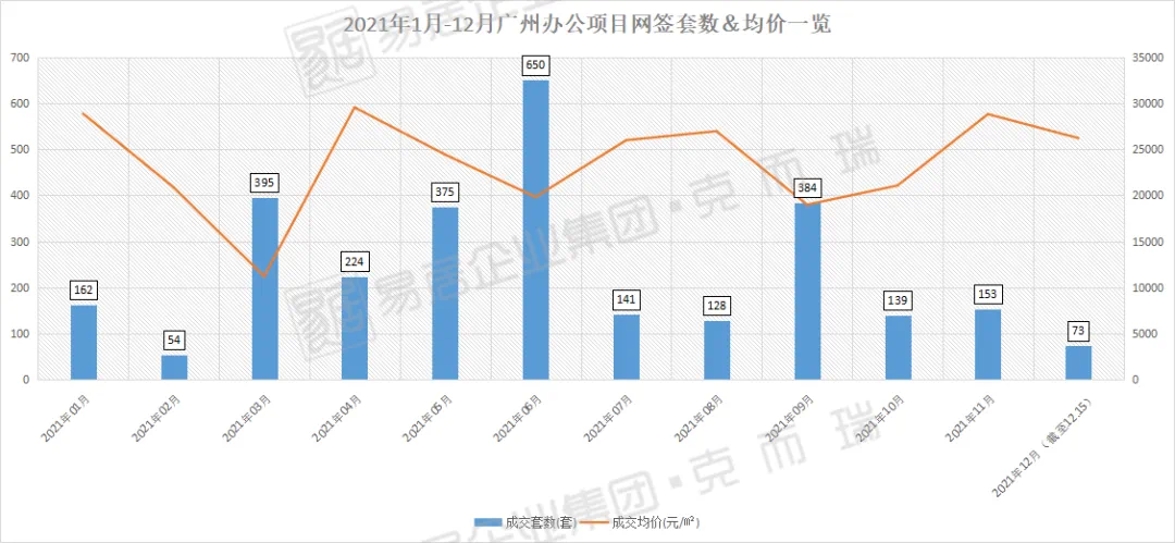 今年截至12月15日,克而瑞统计到2021年广州一手商服市场合计网签2.6套,同比(去年同期网签2.3万套)增长13%;网签均价2.3万/㎡,同比(去年同期网签2.1万/㎡)增长10%。