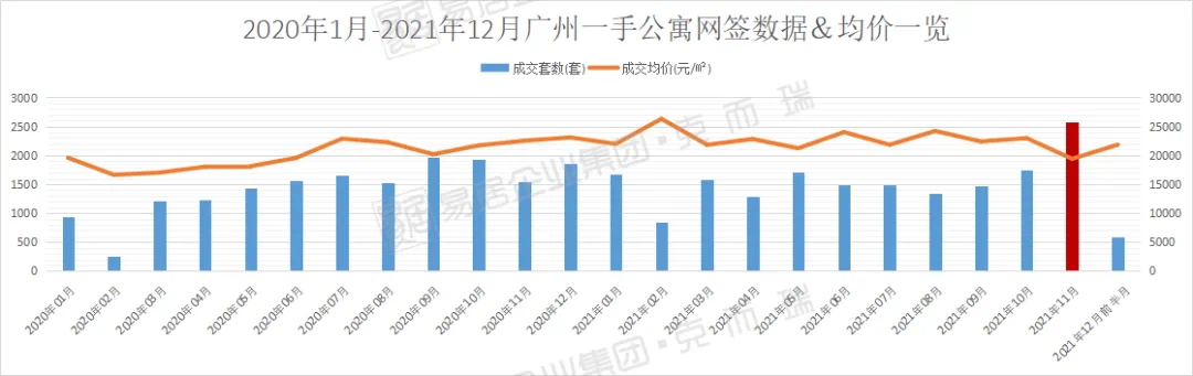 克而瑞监测到,11月广州一手公寓共计网签2573套,环比上涨47%,为2020年以来较高成交。不过从12月前半月的成交情况来看,半个月仅网签587套,本月最终成交量或将回落。