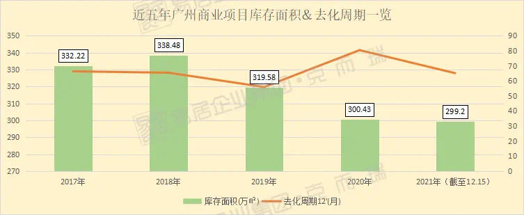 另一方面,商业库存居高不下,截至11月底,广州一手商业市场库存面积为299.2万平,累积存货19619套,去化库存仍长达65.1个月,也即是说,清空目前库存余量需要超过五年时间。