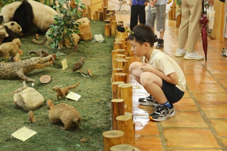 活动尾声,孩子们还参观了野生动物标本展厅,探秘了蝴蝶和蛾类等昆虫王国。返程前的蜂蜜品鉴环节中,当甜蜜的蜂蜜水滑过舌尖,孩子们忽然领悟到课本上“蜜蜂是自然的甜蜜使者”的深意——有孩子舔着嘴角感叹:“原来我们吃的蜂蜜,是蜜蜂飞了那么多路、采了那么多花才酿成的。”