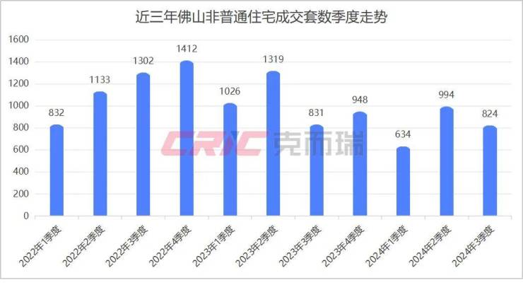 克而瑞数据监测显示,今年前三季度佛山非普通住宅成交2452套,较去年同时期减少22%。