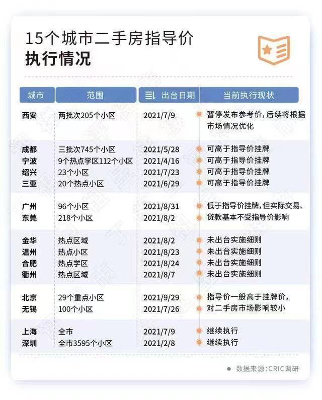 两个月后,宁波建立了热点学区二手住房交易参考价格发布机制,涉及112个小区的二手住房交易参考价格。此后,包括广州、北京、成都、东莞等城市陆续跟进政策。截至2021年底,全国共有15个城市建立了二手住房交易参考价格发布机制。
