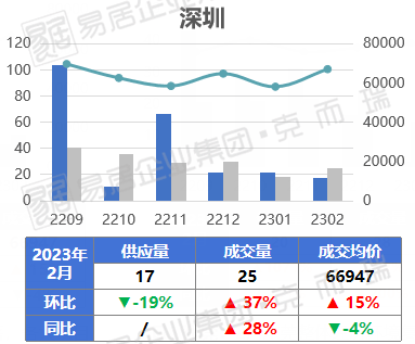 深圳:房企推售节奏放缓,供应回落,各大项目以去库存续销余货为主,成交在网签恢复推动下回升,在全国政策端暖风频吹的大环境下,深圳楼市氛围有所活跃,但真正回暖尚有一定距离,预计3月购房信心逐步修复,房企供货积极性将显著增加,供应提升下带动成交量回升。
