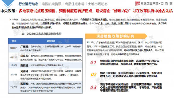 克而瑞统计到,今年截至目前,广东、山东、安徽、河南、四川等地明确表态试点现房销售,实行多年的商品房预售制度出现政策调整转折契机。