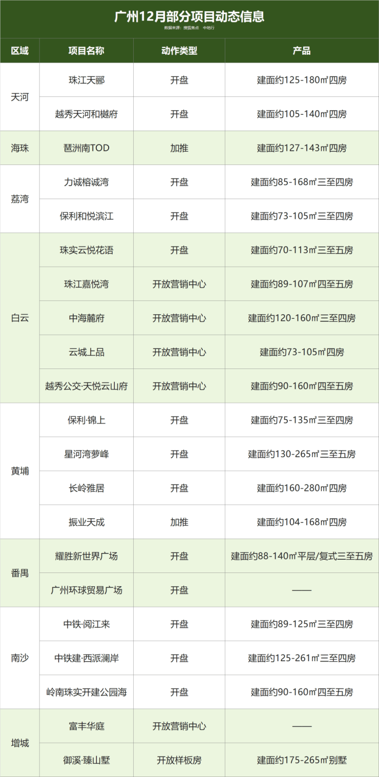花都、越秀、从化三区,则暂无楼盘传出相关消息。