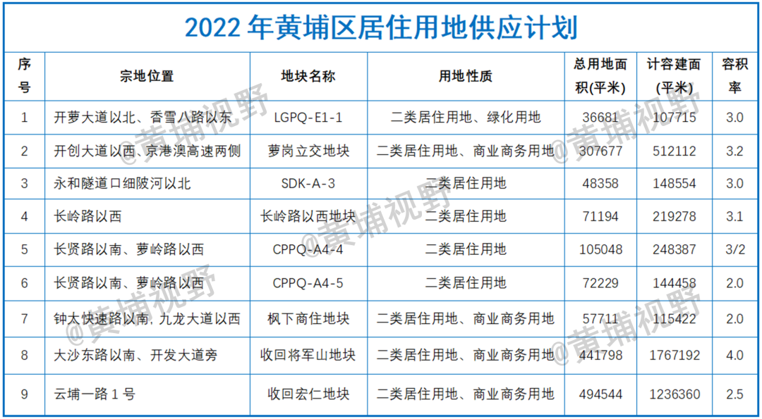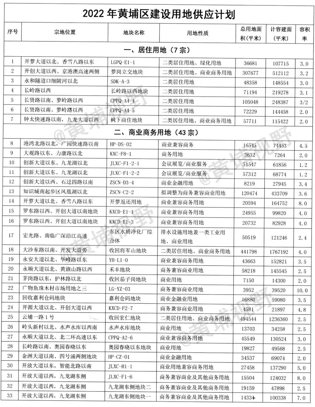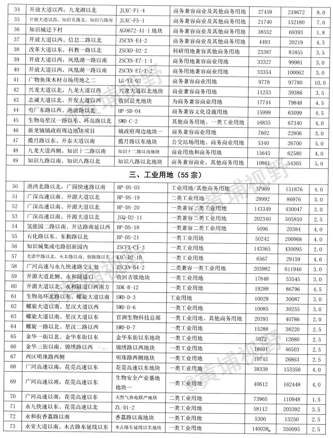 以上是面上的情况。下面单独说一下黄埔区今年供地情况。