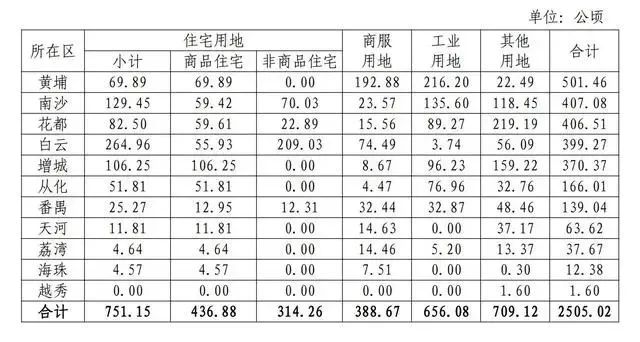计划显示,2022年广州建设用地供应共444宗(包括91宗市国有用地),供应总量为2505公顷。