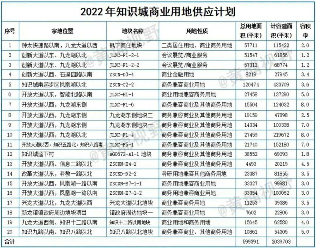 其中,知识城20宗,占地面积共约60万平方米,计容总建筑面积约204万平方米,占特别大头,是今年黄埔区商地供应的主场。