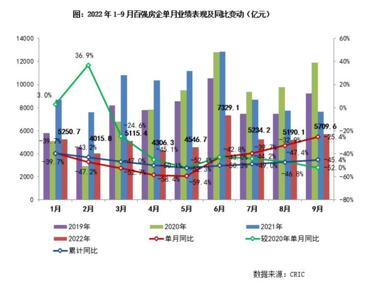 随着传统楼市旺季“金九银十”的到来,房地产企业的销售业绩也实现回升。据克而瑞数据显示,2022年9月百强房企销售操盘金额5709.6亿元,环比增长10%,超半数百强房企实现单月业绩环比增长。