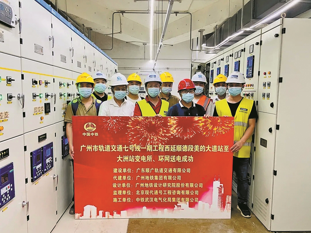 羊城晚报讯 记者曹月报道:近日,顺德通往广州的地铁“通电”了。随着大洲站变电所合闸成功,广州地铁七号线西延顺德段全线顺利实现“电通”目标。“电通”是线路建设中继“隧通”和“轨通”后又一个具有里程碑意义的工程节点,意味着全线信号、动力照明、通风、给排水、屏蔽门、电扶梯等设备系统将陆续进入受电调试阶段。