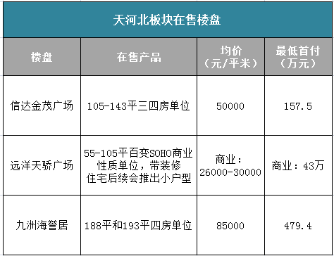 相对来说,天河北板块的住宅价格较天河东高点,而主打改善户型的楼盘上车门槛更高。而商业盘总价百万就能交易。