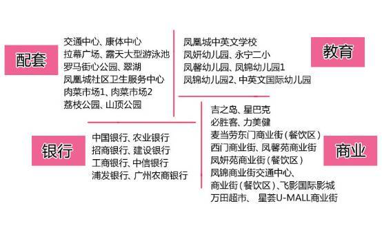 其中,凤凰城通过在社区内部修建交通中心(南部凤妍、东部凤馨、中部凤锦、北部凤晴四大交通中心),设置大批楼巴以及苑区内免费接驳交通系统,将社区小交通与广园快速路连通起来。