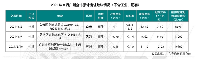 在第二批集中地块未能挂牌出让的背景下,迄今,8 月广州土地一级市场仅有 3 宗商服地块待出让,出让面积 8.04 万㎡,总起拍价 29.4 亿,土拍市场仍然不温不火。