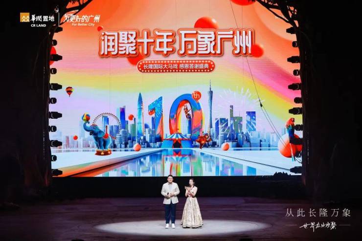 2023年12月16日,华润置地广州十周年庆 “润聚十年 万象广州” 感恩答谢盛典,于世界最大马戏场馆——长隆国际大马戏,非凡盛启。超4000位华润置地广州业主、超150位资深媒体人、超2000位贵宾客户共聚盛典,一同回望传奇旅程的点滴,时光葳蕤,岁月缱绻,共序新章。