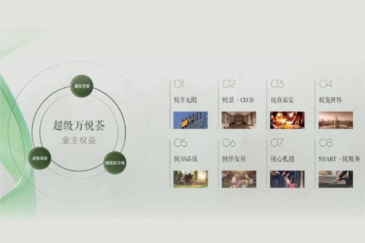 以超级资源为价值基底,在此之上凭借华润置地行业领先的片区统筹能力打造超级文商旅居综合体,创变前所未有的独属于长隆万博悦府业主的超级体验,带来颠覆想象的“超级万悦荟业主权益”,为生活刷新高度。涵盖“悦享无限、悦景CLUB、悦熹家宴、悦览世界、悦知品位、悦伴友居、悦心礼遇、SMART悦服务”八大权益,并首次将万象、长隆、物业三大平台权益拉通,体验翻倍,真正带给业主无限的欢乐和非凡的享受。
