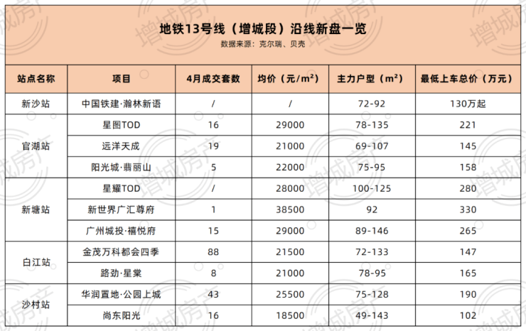 与其他几个站点对比,新塘站周边一手项目均价算是最高的,均价超3万/平。