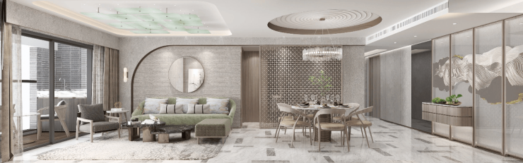 不仅如此,面宽约4米的客厅公区,采用了LDKG一体化设计。无墙体阻隔,整体空间更通透。同时加强了家人间的交流陪伴,充分发挥了亲情共融理念。