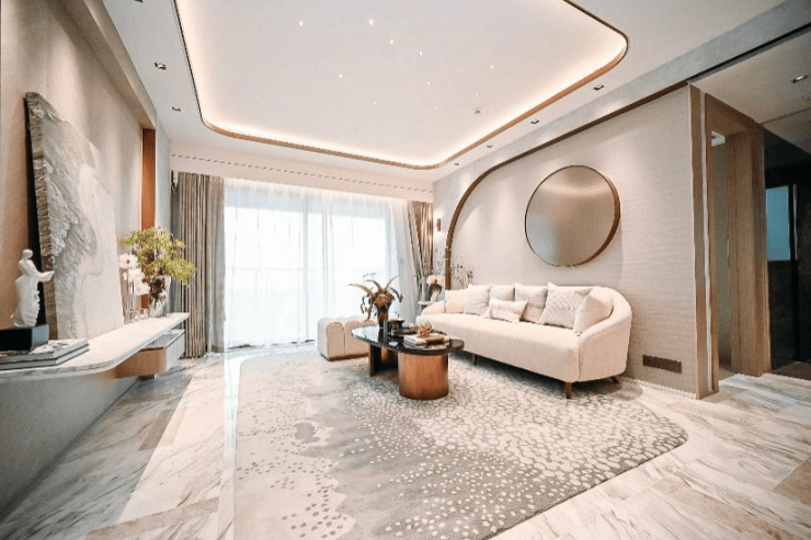 除此之外,新世界耀胜尊府尊梯入户的空中叠墅新品也格外引人关注。产品是分层而居的设计,更能拉伸空间尺度,彰显空间的尊贵气质。上下两层,既方便照顾长辈,又让主人拥有自己的独立空间,即使客厅里家人在看电视、聊天,也丝毫不影响在楼上享受愉悦静谧的独处时光。客厅标配了超大阳台,可以最大程度将长隆万博CBD景观引入室内。