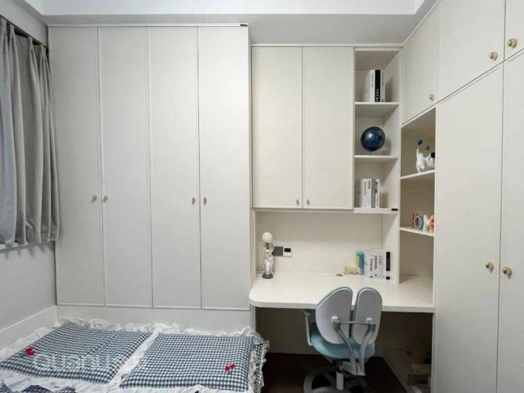 儿童房以纯白+湖绿为主,清新治愈。衣柜是全友“未来派”定制系列,内嵌式拉手美观又安全。既满足一家人共享天伦之乐又能同时兼顾到个人隐私,达到功能与舒适度的完美结合,这样的家你心动了吗?欢迎对装修感兴趣的朋友来全友全屋定制交流了解~