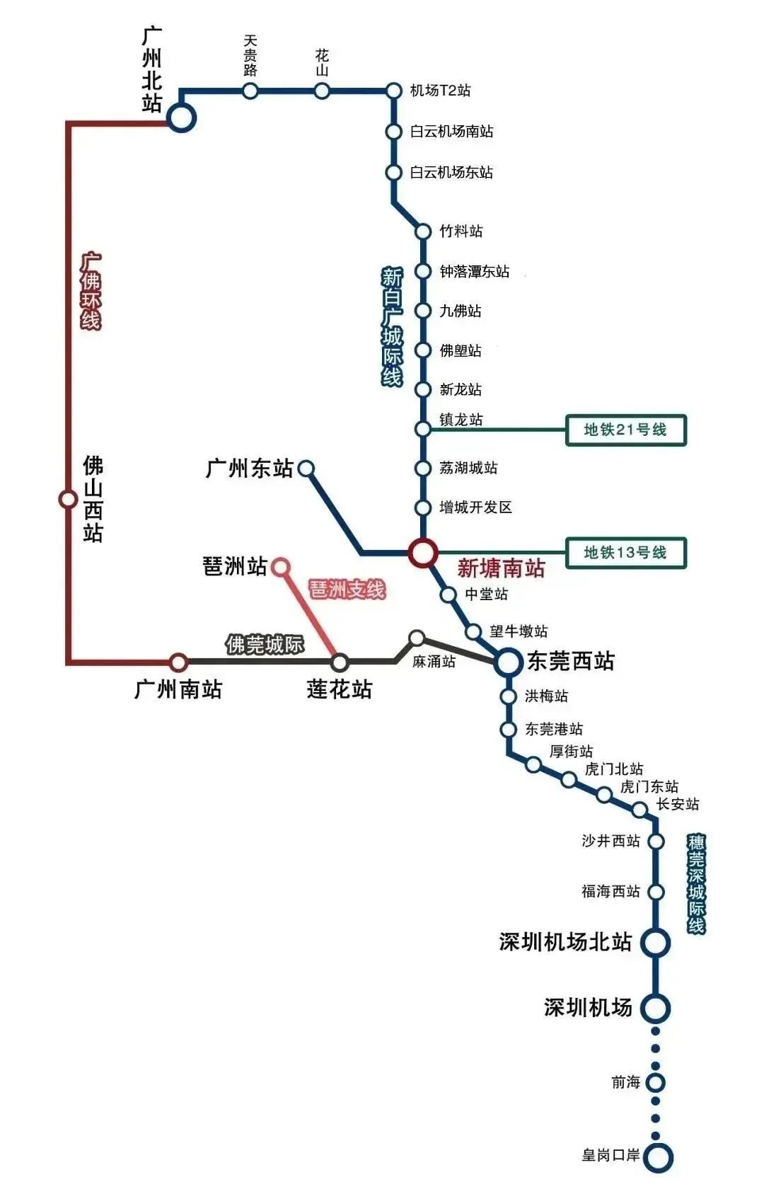 在2021年初,广东省交通运输厅公布关于新白广城际铁路新塘至机场T2段项目车站站名命名方案的批复,正式确定了10座车站的命名。