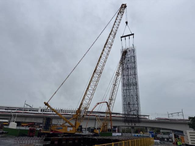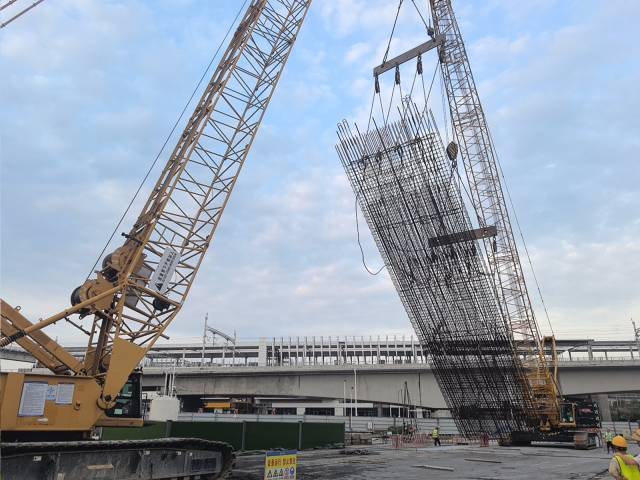 车站施工场地临近高铁线,为了最大限度降低施工干扰,广州地铁联合施工单位中交二航局采用“设备选型+工艺优化+时段管控”等多重手段保证安全。车站施工选用低净空成槽设备,从源头上消除设备倾覆对铁路设施的安全威胁。在车站材料吊装上,科学规划吊装布局,严格限定吊装半径,并在高铁运行“天窗期”进行施工,实现车站施工零干扰。