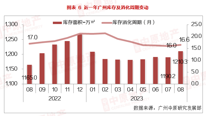 截至8月末,全市库存量1210.3万㎡,去化周期16.6个月。
